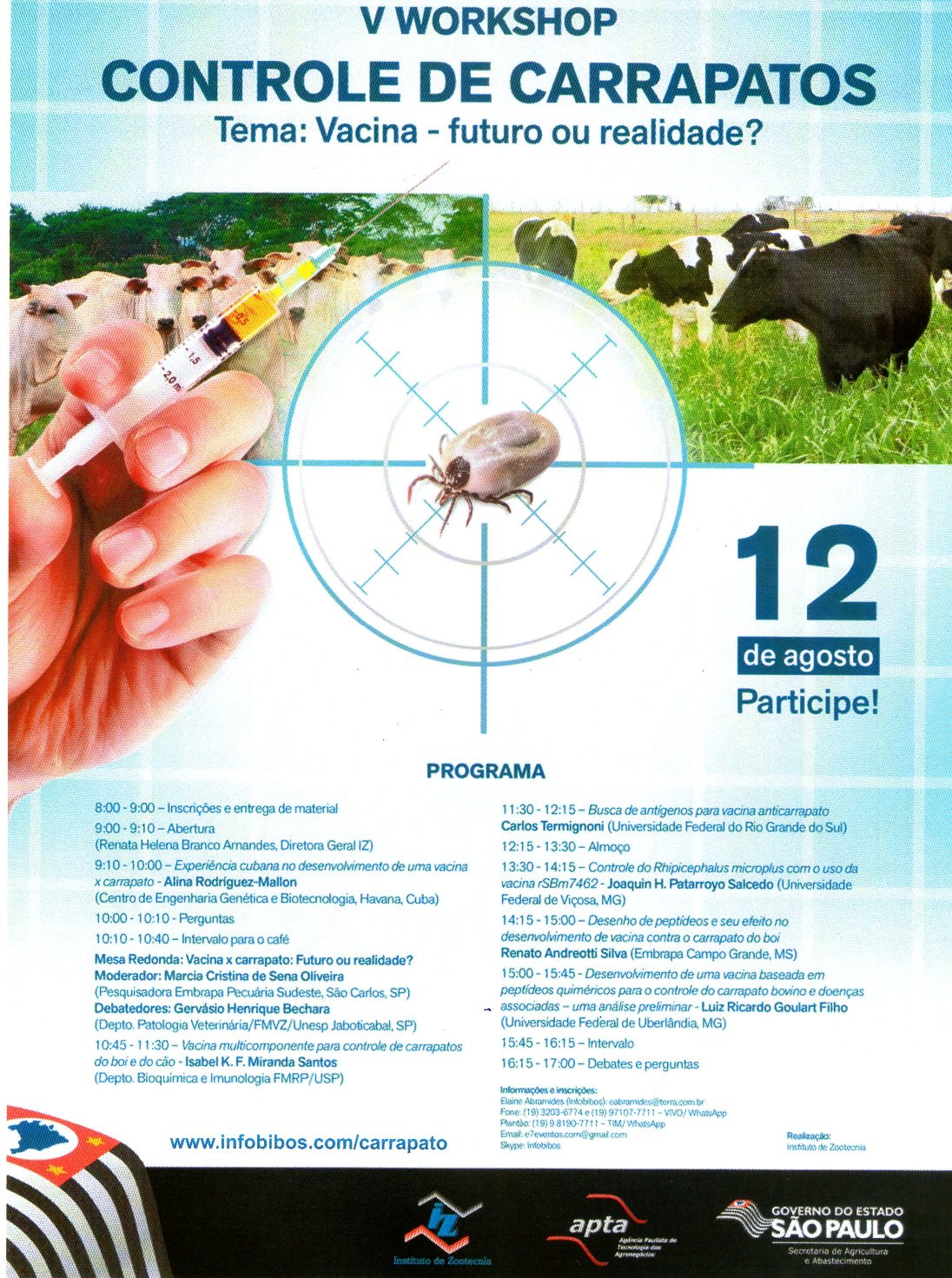 Data: 12/08/2015 Local: Instituto de Zootecnia (IZ) Coordenação: PqC Dra. Cecília José Veríssimo ResumoVacina: Futuro ou realidade?