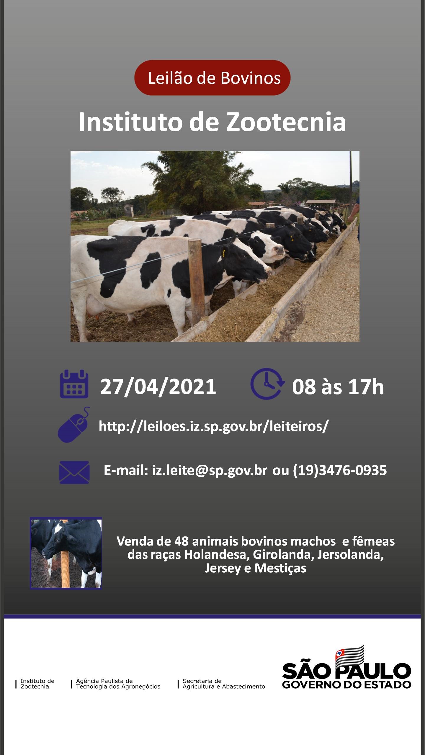 Dia 27/04/2021 das 08 às 17h, por meio do site: http://leiloes.iz.sp.gov.br/leiteiros/