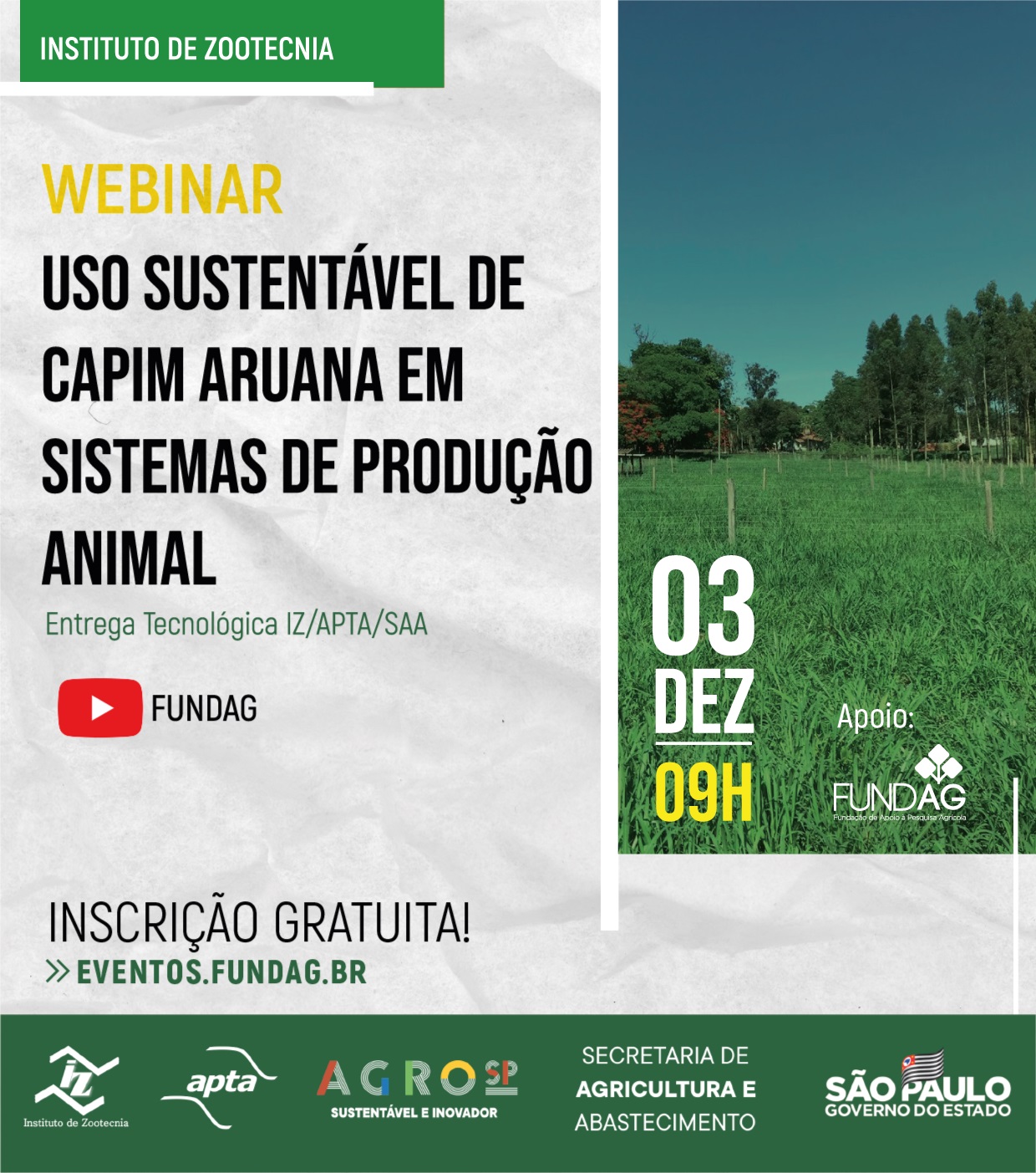 9h – Abertura: Dr. Enilson Geraldo Ribeiro – Diretor Técnico de Departamento do Instituto de Zootecnia - IZ e Dra. Luciana Gerdes – Diretora do Centro de Pesquisa de Nutrição Animal e Pastagens do IZ.