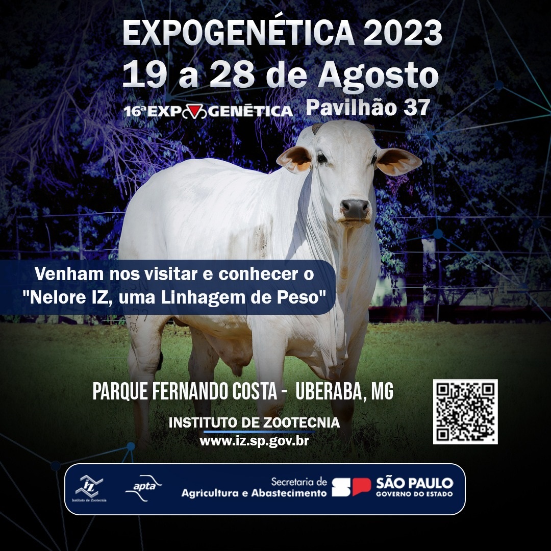 O Instituto de Zootecnia/APTA, da Secretaria de Agricultura e Abastecimento do Estado de São Paulo, tem a grande satisfação de convidar para participar conosco da ExpoGenética – 16ª edição da maior feira de genética zebuína do mundo–, que acontecerá, no período de 19 a 28 de agosto de 2023.