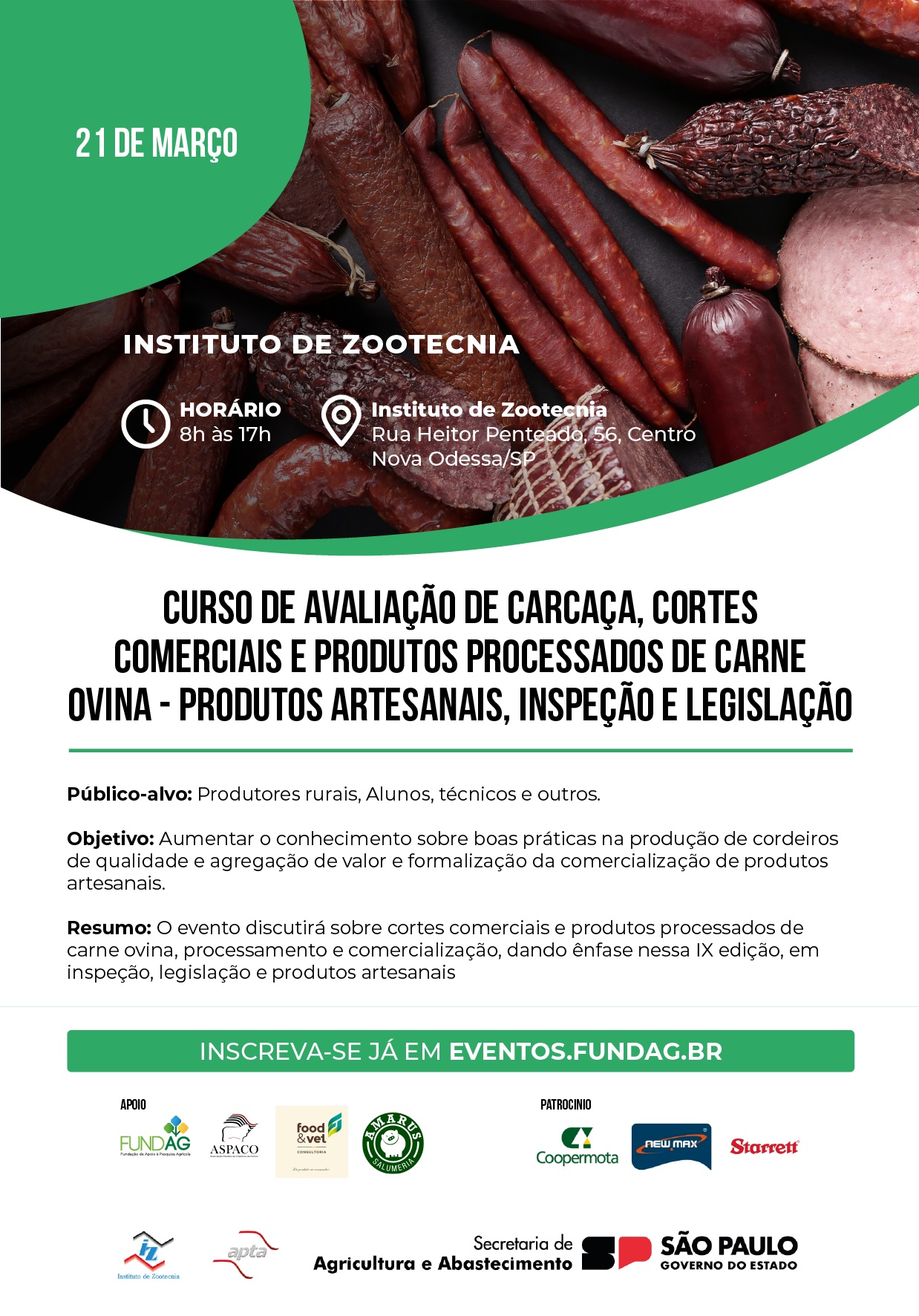 R$ 150,00 para associados da APAC, Núcleo de charcuteiros de Ribeirão Preto, Membros do Núcleo de Produtores do Leste Paulista, Sócios da ASPACO e Alunos da PG/IZ.