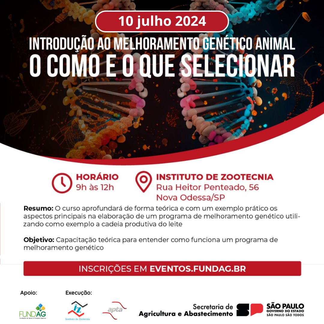Data: 10/07/2024 das 9h às 12h Local: Instituto de Zootecnia | Nova Odessa/SP Coordenação: Anibal Eugênio Vercesi Filho Resumo
