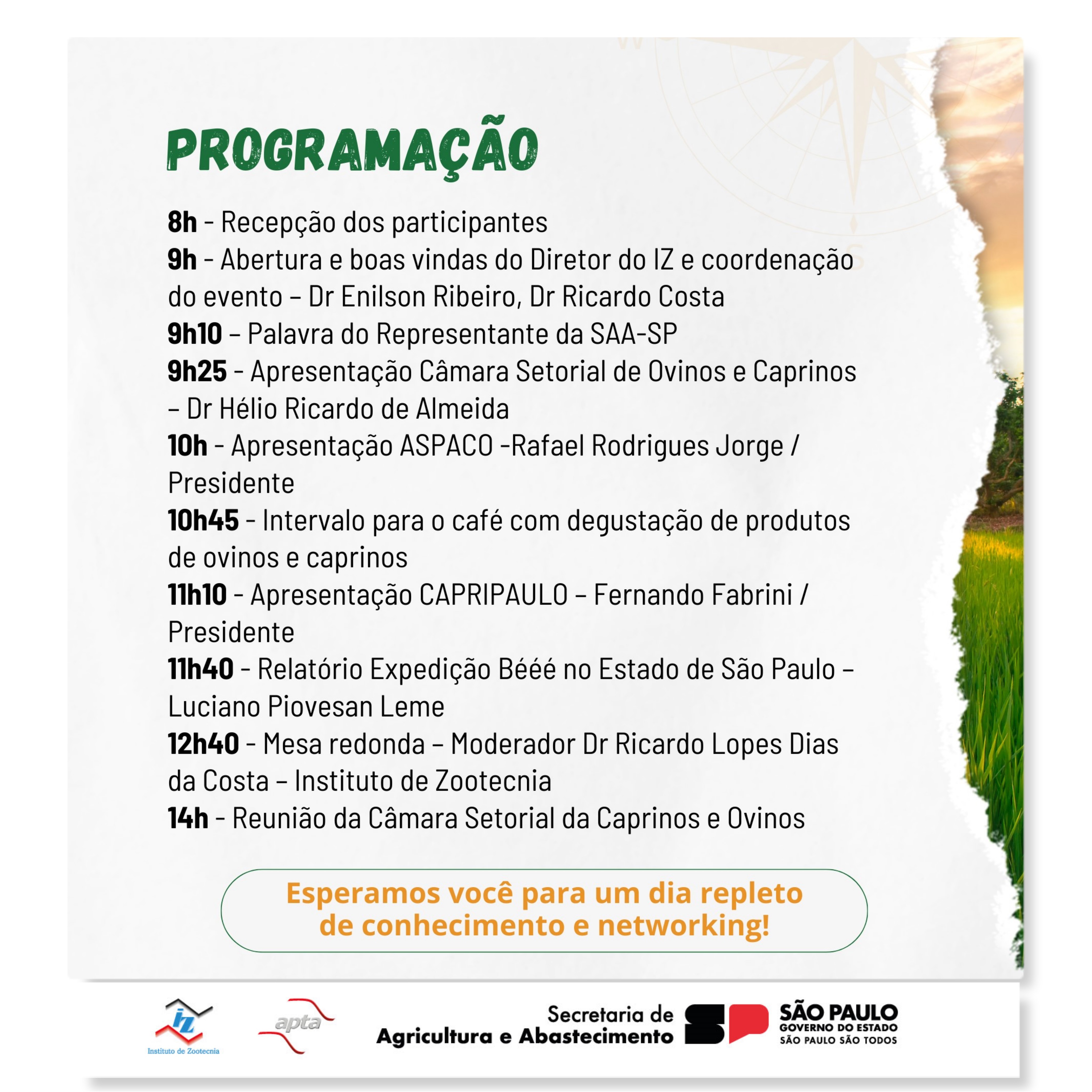 O Instituto de Zootecnia (IZ-APTA), da Secretaria de Agricultura e Abastecimento do Estado de SP, realizará evento presencial: