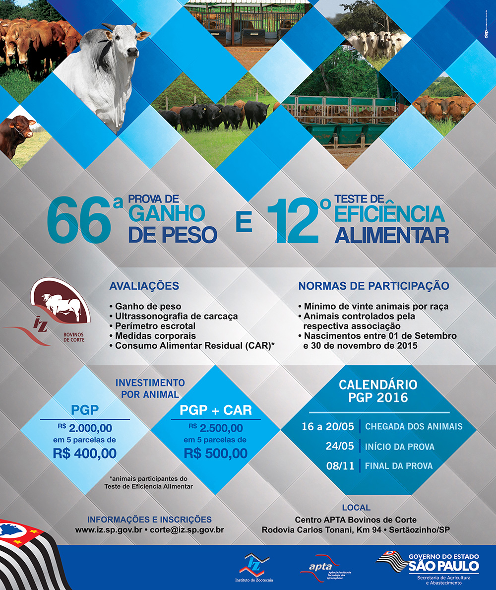 Local: Centro APTA Bovinos de Corte - Rodovia Carlos Tonani, Km 94 - Sertãozinho / SP