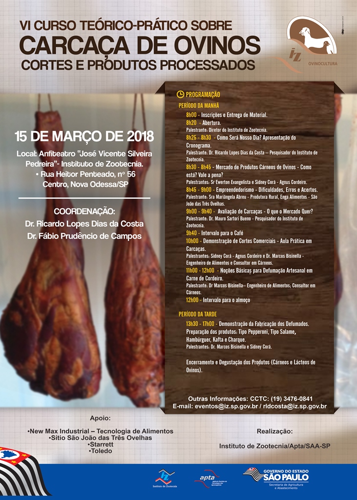 9:00h – 9:40h - Avaliação de carcaças – o que o mercado quer? - Dr Mauro Sartori Bueno – Pesquisador do Instituto de Zootecnia;