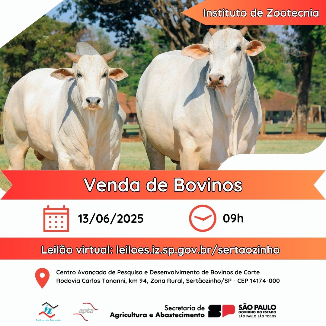 Os animais remanescentes serão vendidos até 13/08/2025, no mesmo site.